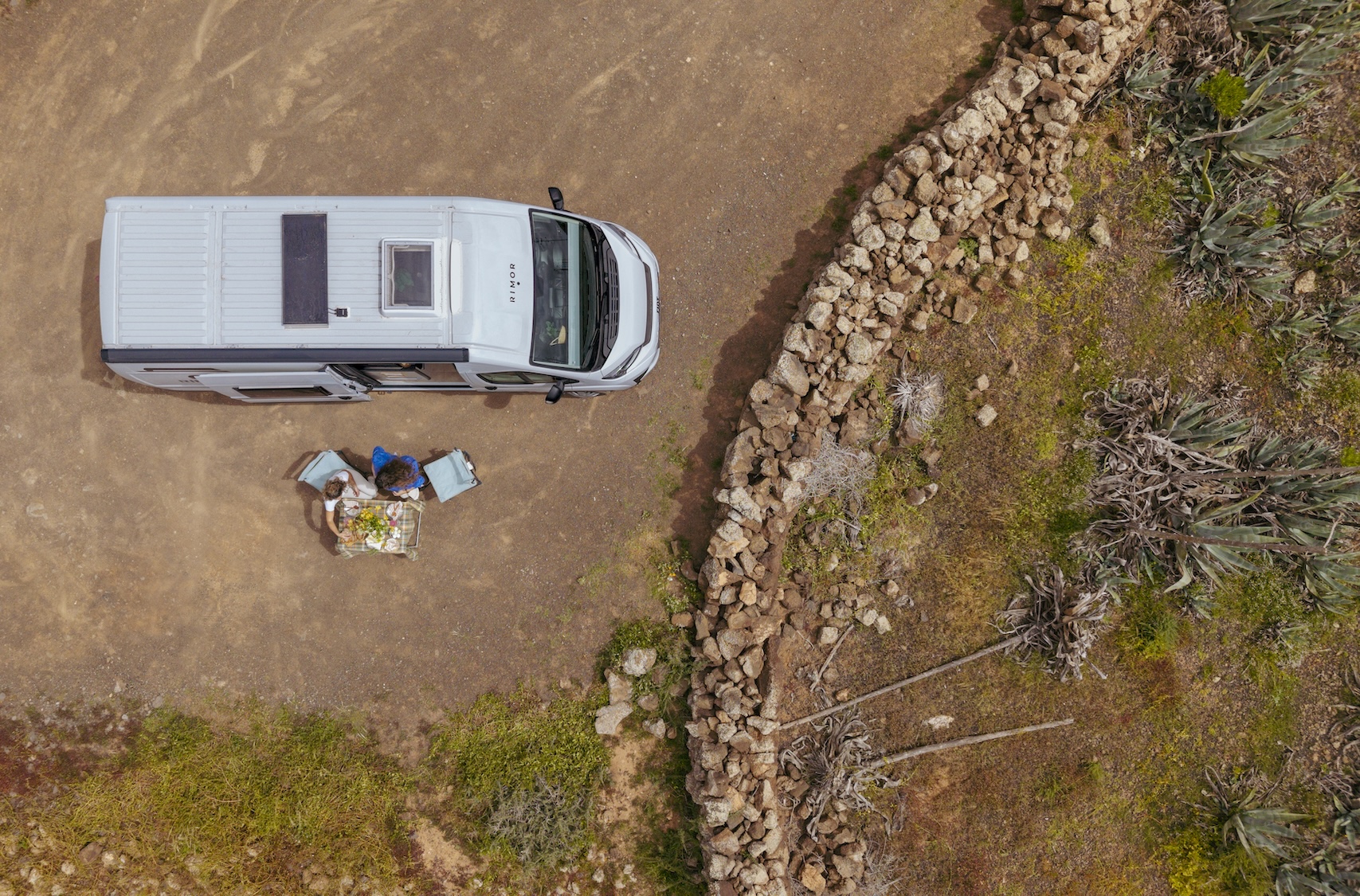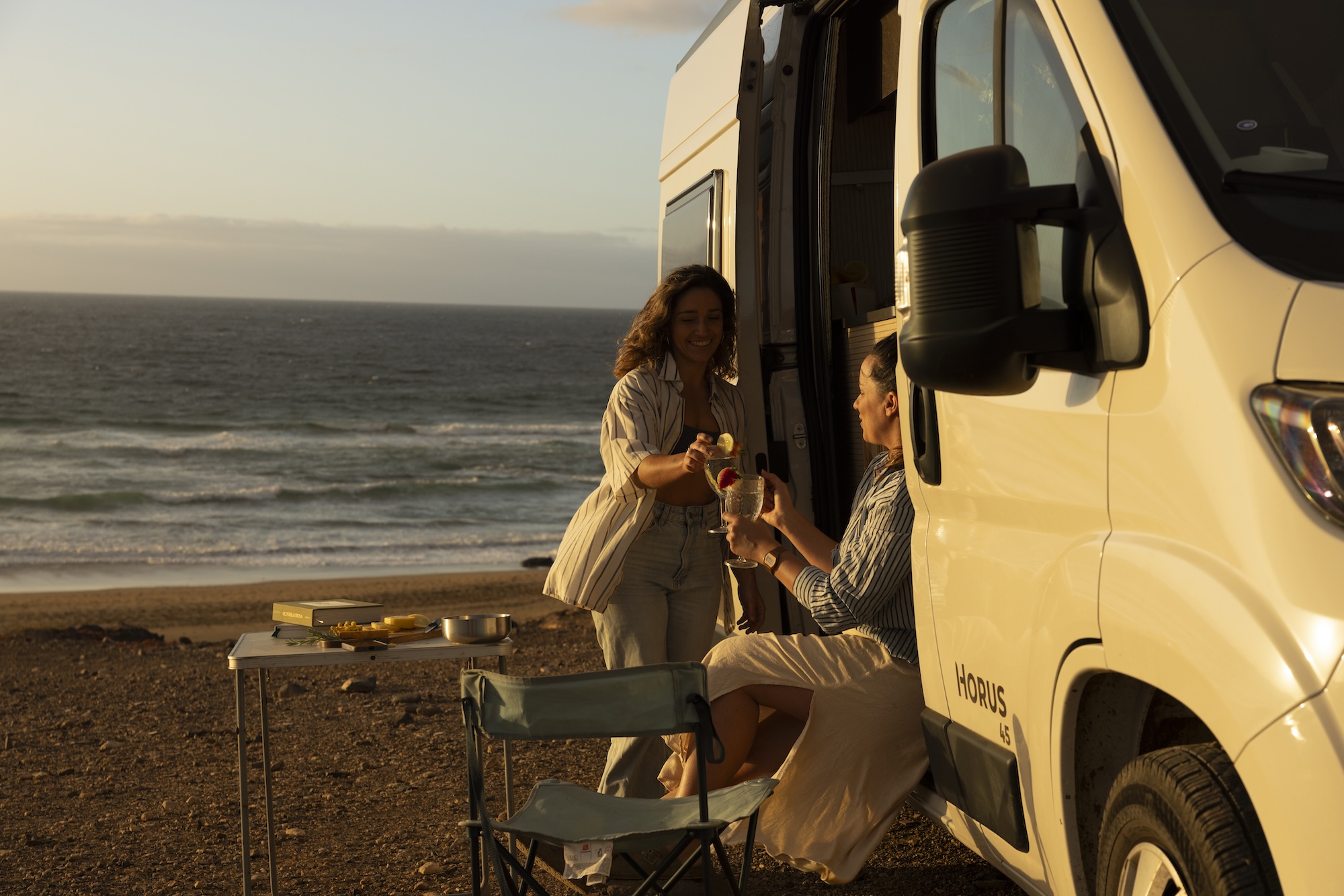 En nuestro caso viajamos con la Volkswagen Crafter y fue todo un acierto, es súper cómoda tanto para conducir por la isla como para acceder y quedarte en cualquier punto. Tiene ducha tanto fuera como dentro, hornillo de gas, lavabo y un cama bastante grande con otra supletoria.